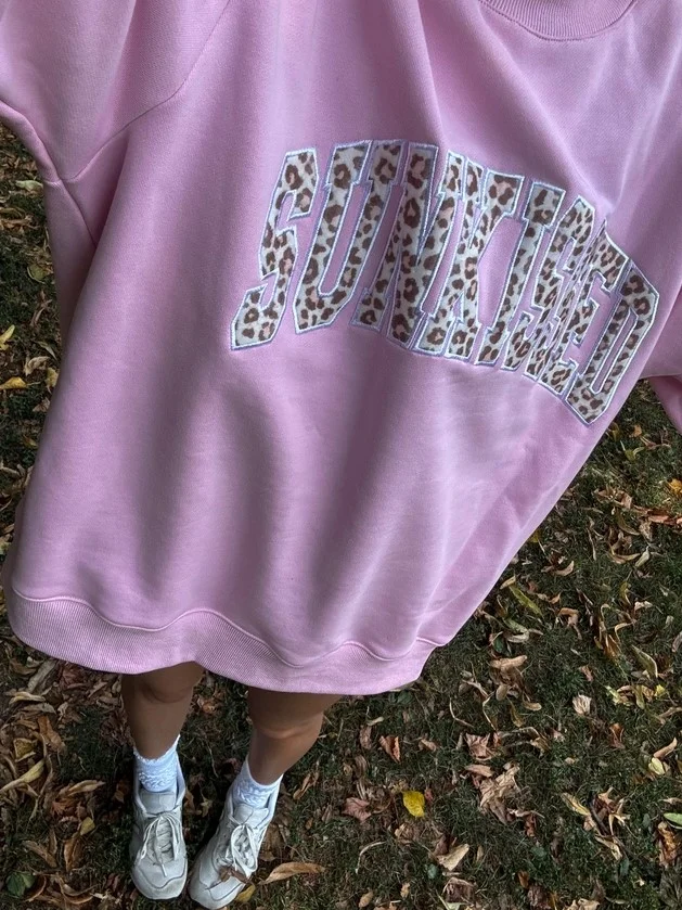 Custom Logo Letter Women's Leopard Patchwork Pullover Sweatshirt Oversized Long Sleeve Embroidered Print Mock Neck Autumn/Winter